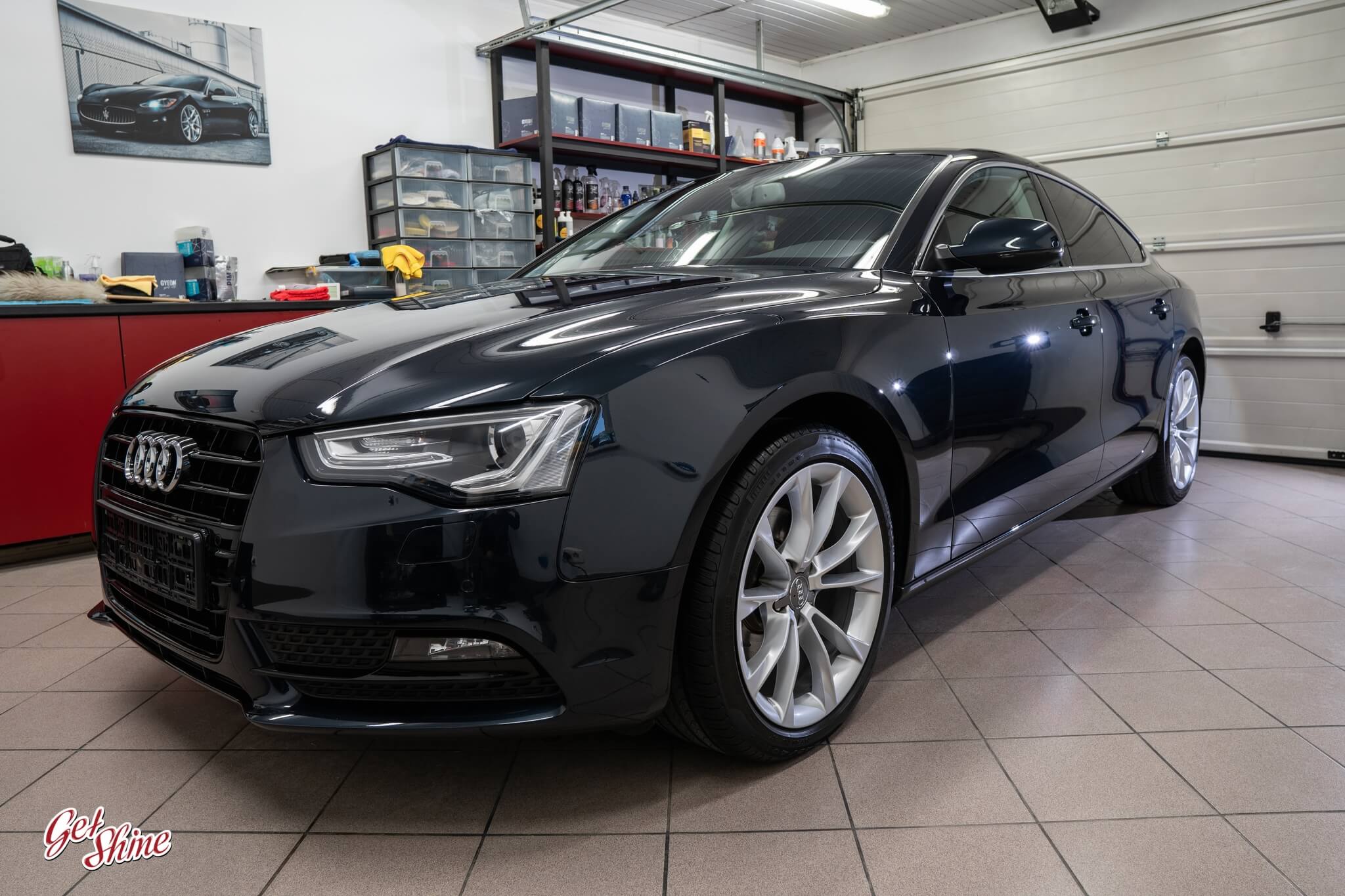 Ciemne, metaliczne lakiery, takie jak ten piękny Moonlight Blue na Audi A5, są niezwykle wymagające. Każda rysa, zmatowienie czy hologram jest na nich widoczna jak na dłoni, odbierając autu cały urok. Właściciel tego egzemplarza powierzył go GetShine, aby przywrócić mu salonową głębię i perfekcyjny blask.
