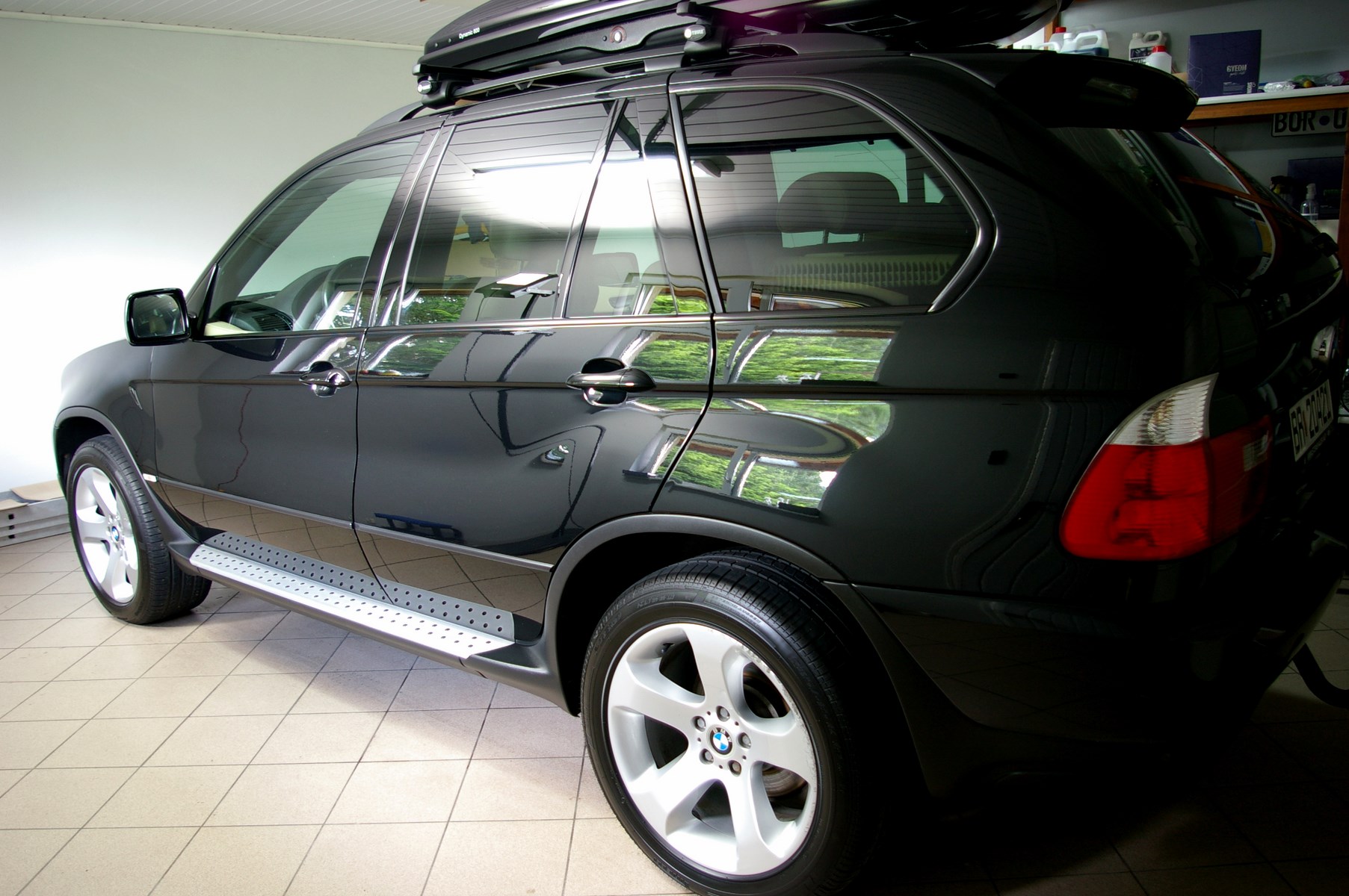 BMW X5 – pełna, wieloetapowa korekta lakieru wraz z zabezpieczeniem trwałym woskiem.